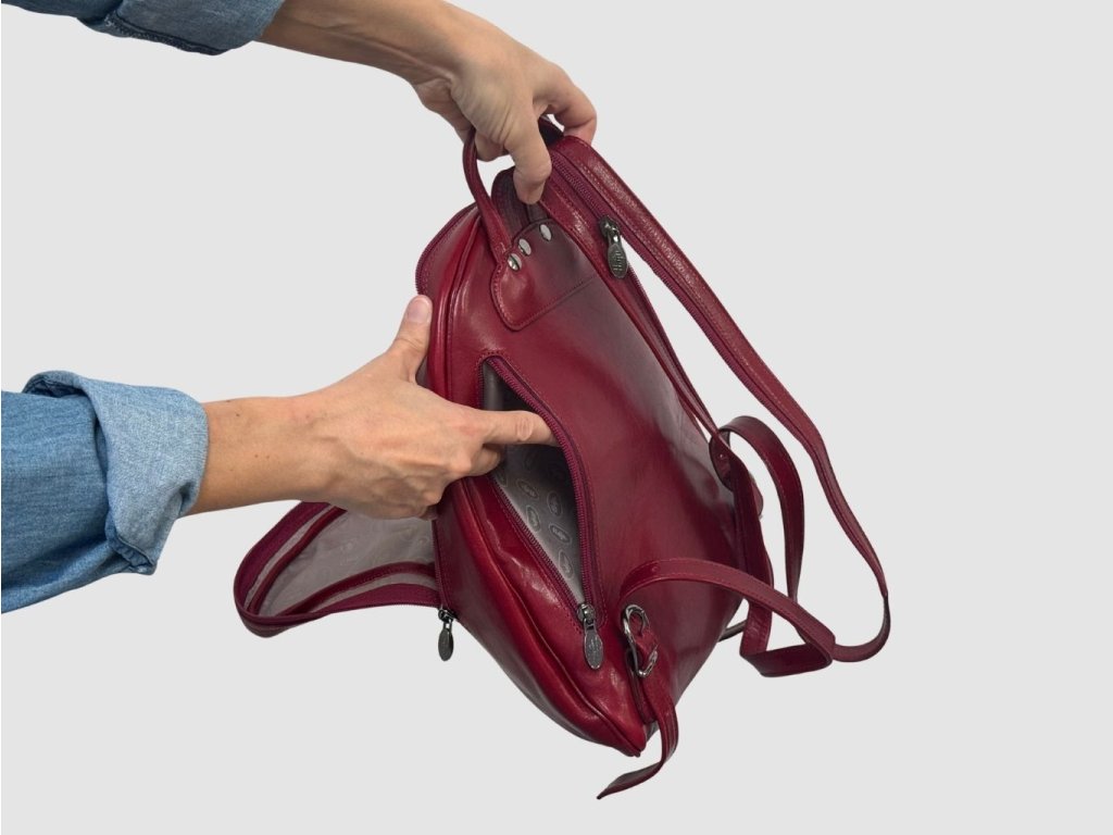 Kožený batoh v krásnej príťažlivej žiarivej červenej farbe, ktorá je farbou lásky, vášne, energie a životnej sily. Pokiaľ uprednostňujete pohodlie a praktickosť, tak tento módny kúsok je pre vás ako stvorený. Moderný a hlavne pohodlný batoh na obidve ramená šetrí váš chrbát, a môžete mať pri ňom voľné ruky. Vďaka zipsu, ktorý je všitý do popruhov ho viete pre zmenu nosiť aj na jednom ramene. Kvalita, ktorá bude vašou súčasťou po dlhé roky.