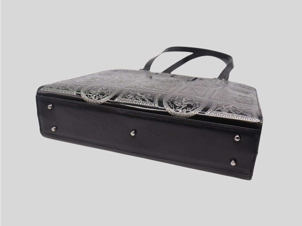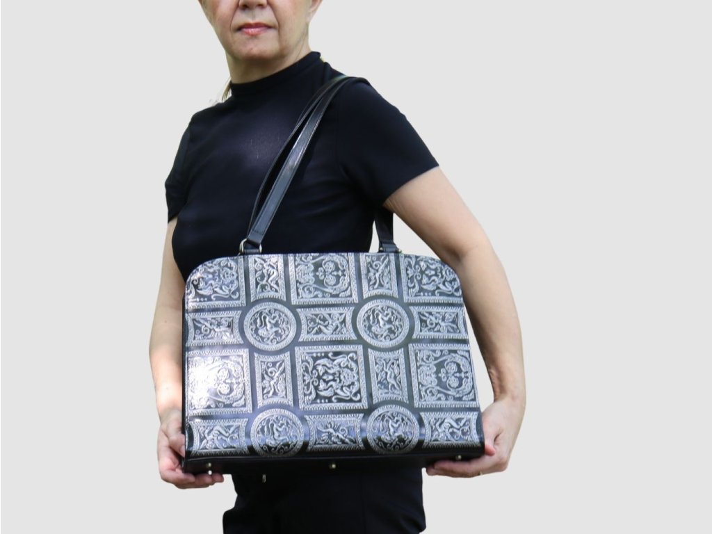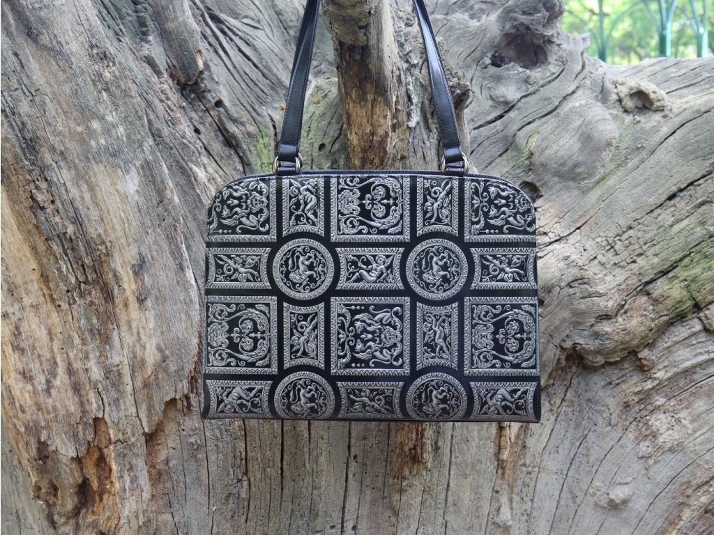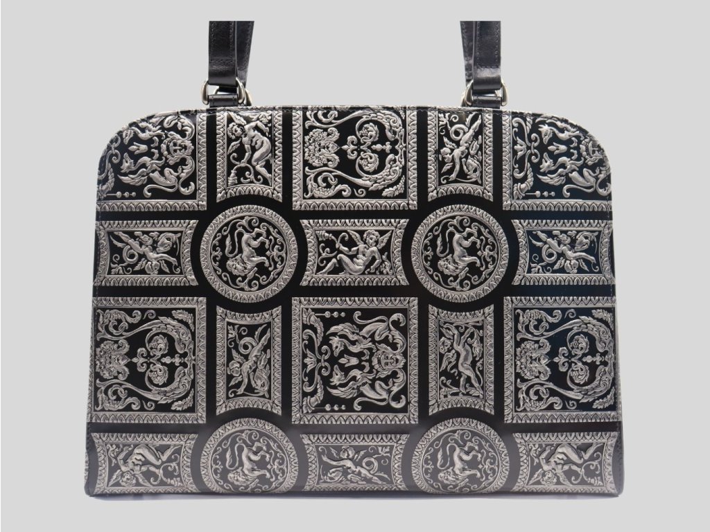 Luxusná kožená kabela s nádhernou maľbou predstavujúcou súzvuk, súlad a harmóniu v kombinácii s čiernou farbou na zadnej strane je výnimočná nielen vzhľadom, ale aj svojimi materiálmi. Je ušitá z kvalitnej usne hermés, ktorú používajú špičkoví módni výrobcovia. Lisovaná a ručne maľovaná koža, ktorá sa vyrába iba v obmedzených počtoch a doplnená zipsami japonskej značky YYK, vyrábanými v Nemecku, a ktoré sú známe svojou bezporuchovosťou, v kombinácii s drahým kovaním, zaručuje výnimočnosť každému výrobku.