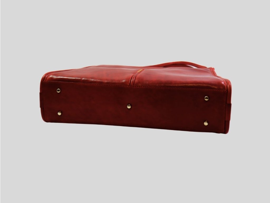 Kožená kabela v nádhernej žiarivej červenej farbe, ktorá je farbou lásky, vášne, energie a životnej sily, so svetlohnedými detailmi na prednej strane a na predných remienkach upúta ihneď pozornosť. Pôsobí veľmi elegantne a s tými správnymi doplnkami s ňou očaríte okolie na prvý pohľad a dodá vám ten správny šmrnc.