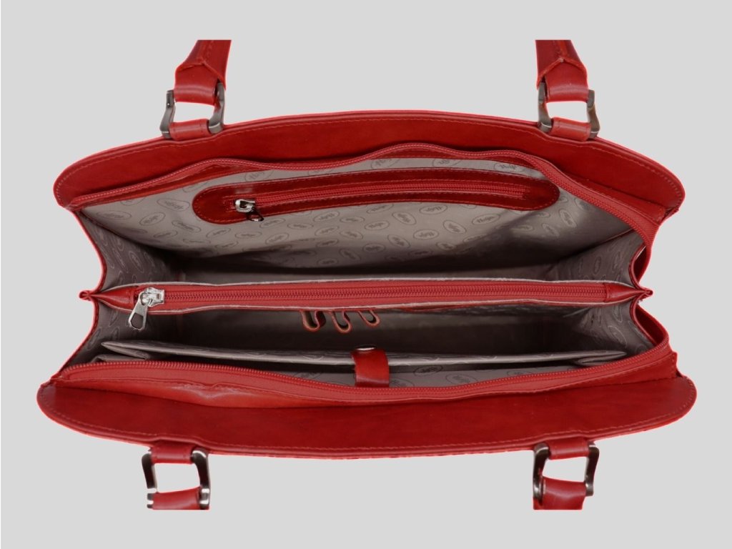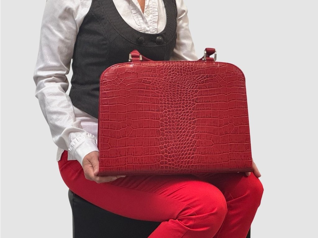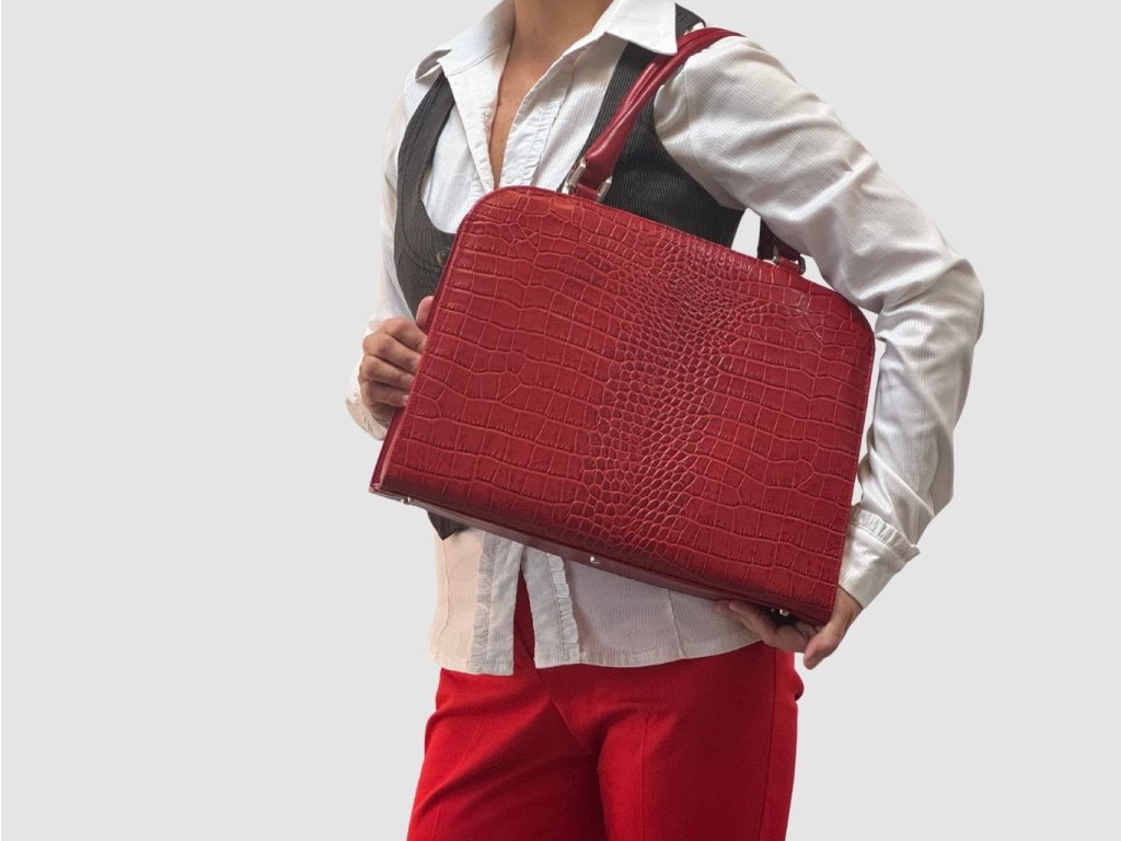 Kožená kabela ihneď upúta pozornosť príťažlivou žiarivou červenou farbou, ktorá je farbou lásky, vášne, energie a životnej sily, svojou eleganciou a zaujímavým prevedením zvieracieho vzoru. Prekvapí aj veľkorysým vnútorným priestorom A4. Môžete sa spoľahnúť, že vám dodá ten správny šmrnc a dokonale dokáže doplniť váš outfit. Pre ženy, ktoré vedia, čo chcú. Ste jemná aj silná. Elegantná aj odvážna. A táto kabelka je presne pre vás.