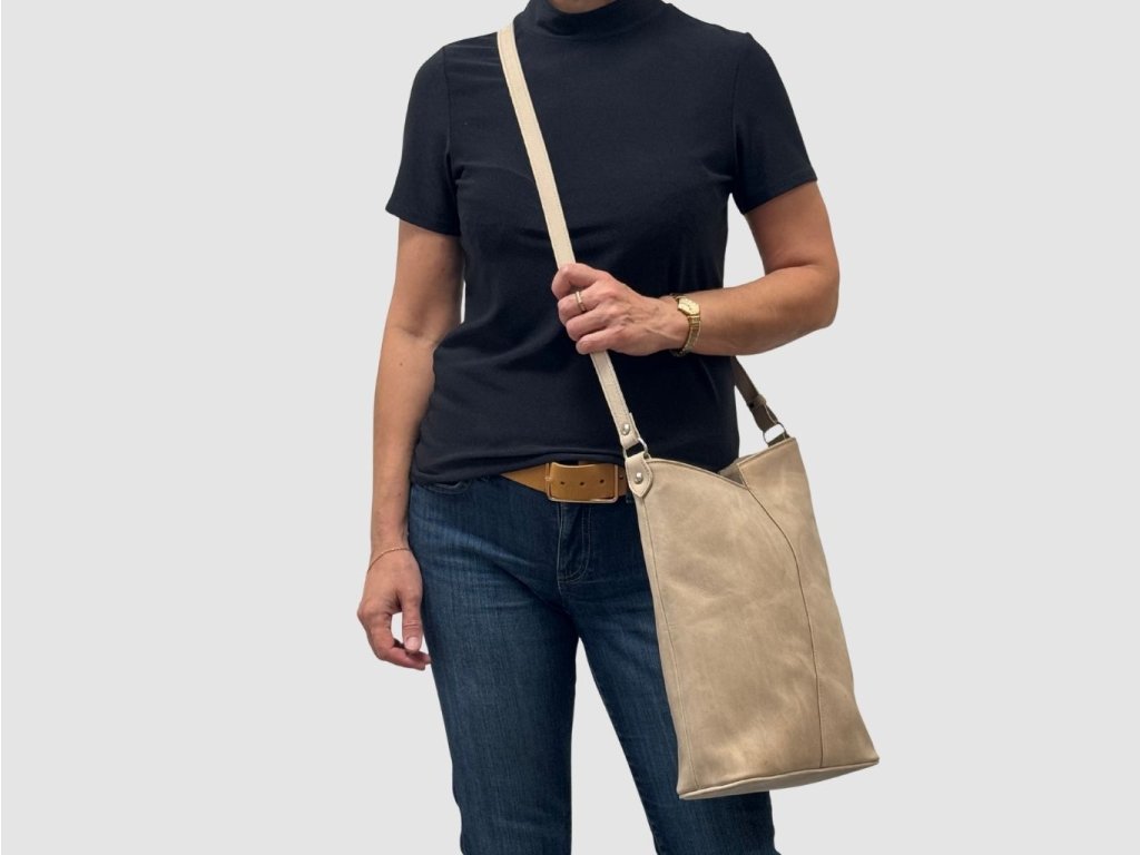 Kožená kabelka s variabilným remeňom v príjemnej zemitej smotanovej farbe, ktoré sú tento rok in. Na dotyk mäkká jemná koža - brúsená. Disponuje pomerne veľkým a hlbokým priestorom na uloženie potrebných vecí, ktoré chcete mať práve so sebou. Či už si ju zavesíte na rameno alebo ako crossbody, je len na vás.
