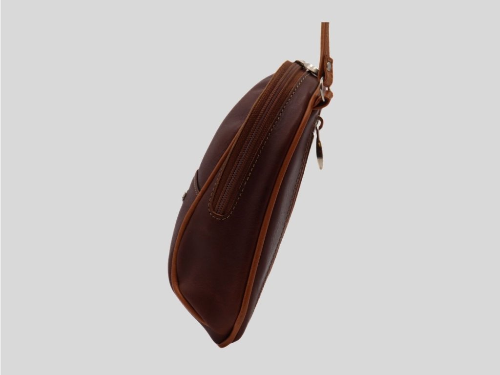 Kožená kabelka menšia skôr ako batôžtek vhodná aj pre slečny - veľké parádnice, kde si ukryjú svoje poklady. Je praktická aj pre tie dámy, ktoré uprednostňujú voľné ruky, napr. mamičky na prechádzke so svojimi ratolesťami, keď číhajú na každý ich krok a neraz musia za nimi pobehnúť. V teplej hnedej farbe ľahko zladíte s obuvou.