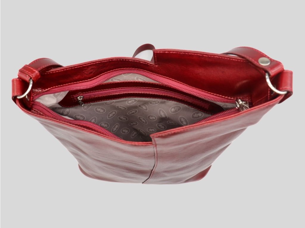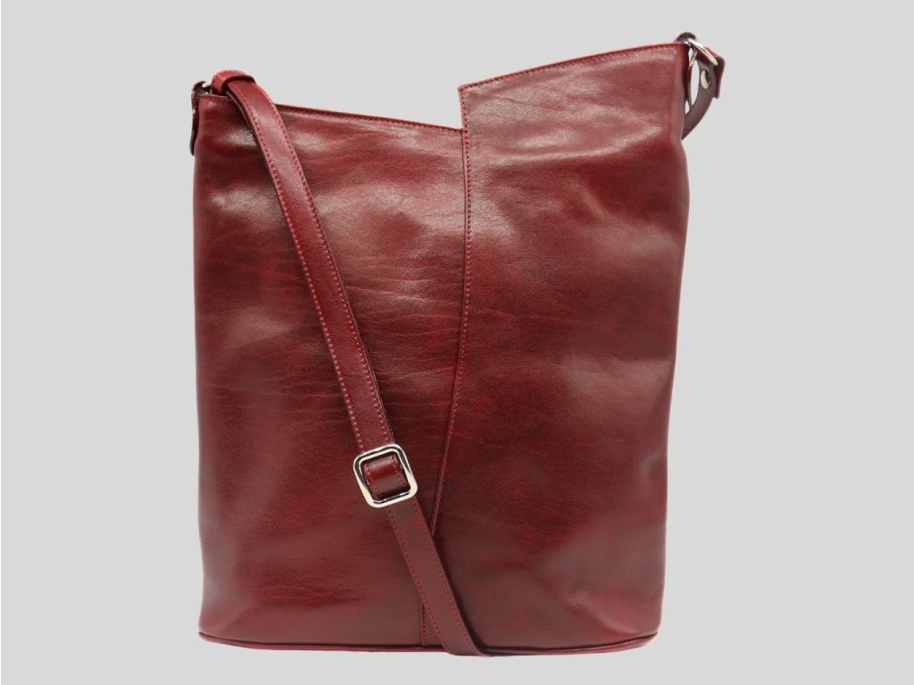 Kožená kabelka s variabilným remeňom v krásnej tmavej ohnivej bordovej červenej farbe - odtieň tohto roka, a ktorá je farbou elegancie a sebavedomia. Disponuje pomerne veľkým a hlbokým priestorom na uloženie potrebných vecí, ktoré chcete mať práve so sebou. Či už si ju zavesíte na rameno alebo ako crossbody, je len na vás.