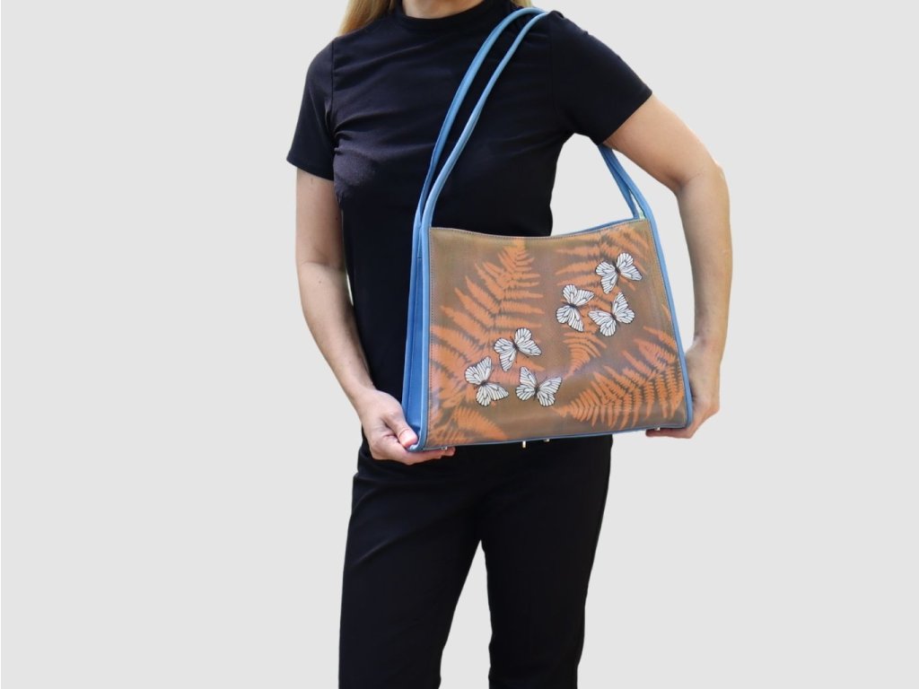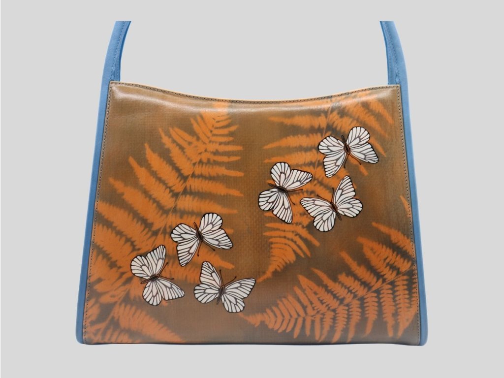 Kožená kabelka ručne maľovaná. Motív krásneho motýľa Beláska, ktorý bol inšpiráciou pri tvorbe tohto originálneho diela s nádychom romantiky. Kabelka upúta ihneď pozornosť svojím jedinečným dizajnom (identická neexistuje) a kvalitou, a vy sa ňou môžete pýšiť po dlhé roky. Umelecké dielo hodné obdivu. Odmeňte sa touto krásou a spravte si radosť!