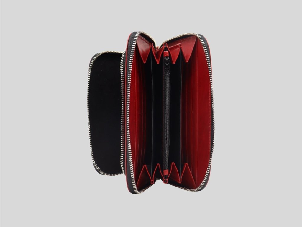 Vnútorná výbava: * 4 x priehradka na papierové bankovky * 1 x zipsové vrecko na kovové mince * 12 x priehradka na vizitky a karty * 2 x ploché vrecko na dokumenty