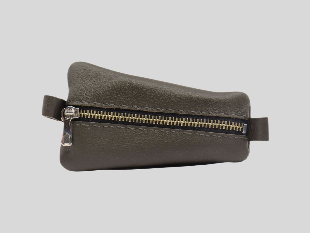 Kožená kľúčenka v prevedení khaki zelenej farbe a príjemnej mäkkej koži. Elegantne uschová všetky vaše kľúče, k čomu jej pomáha aj kovové krúžko, ktoré je vo vnútri kľúčenky pripevnené na prišitom koženom pútku. Pokiaľ máte radi svoje kľúče pokope a v bezpečí, tak táto je pre vás ako stvorená. Alebo ako dobrý tip na darček pre niekoho blízkeho.