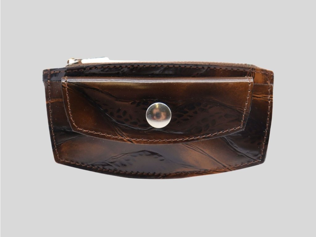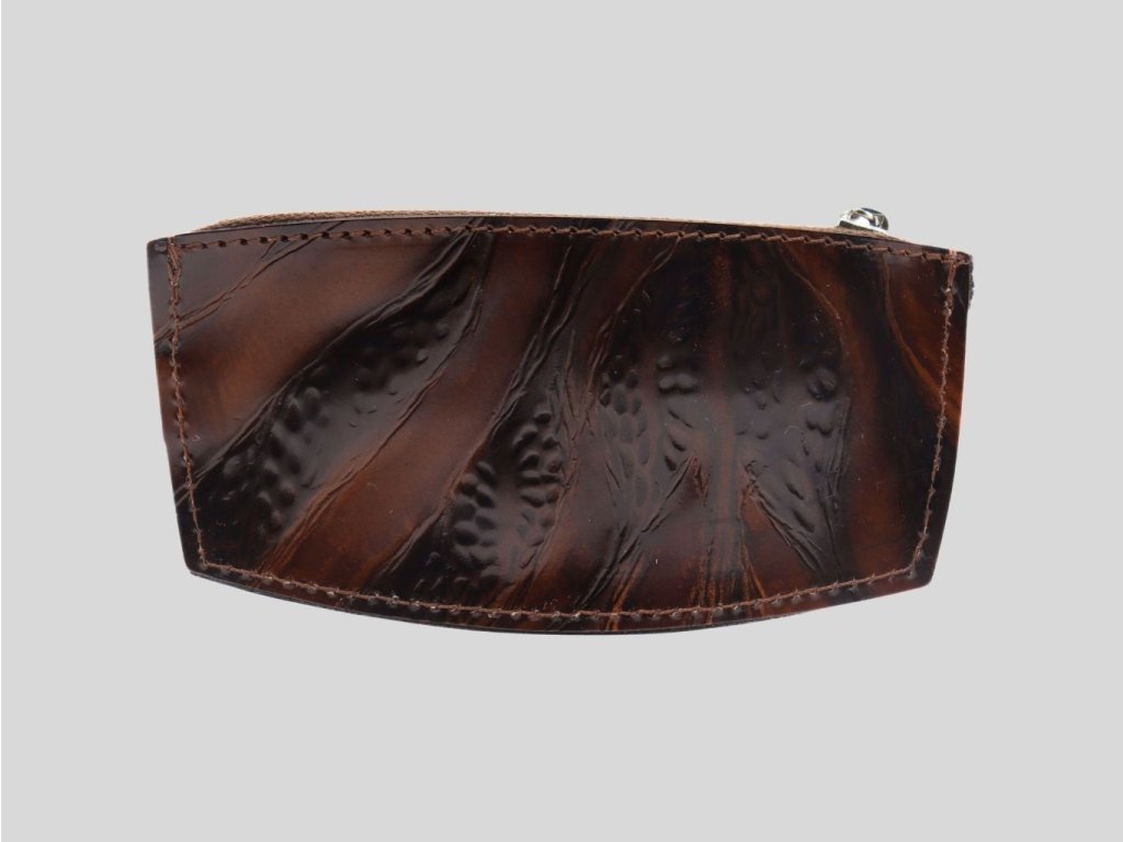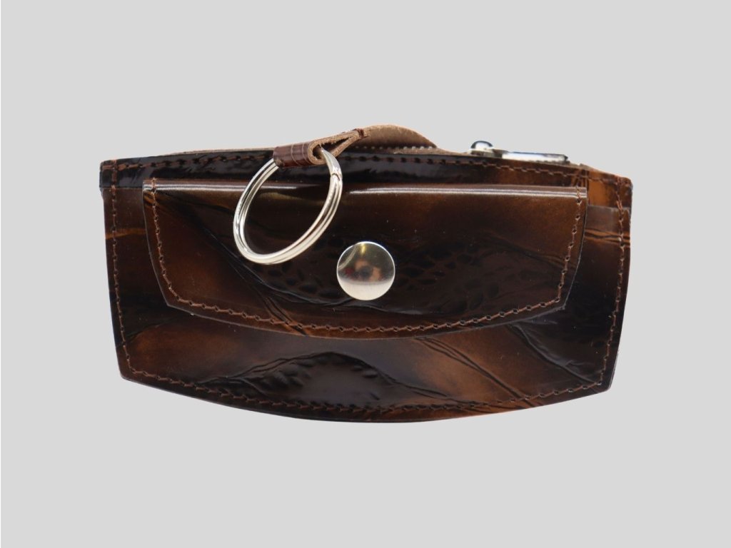 Kožená kľúčenka v limitovanej kolekcii Luxury v krásnej hnedej farbe s jemným vzorom. Lisovaná a ručne maľovaná koža s plastickým vzhľadom. Elegantne uschová všetky vaše kľúče, k čomu jej pomáha aj kovové krúžko, ktoré je vo vnútri kľúčenky pripevnené na prišitom koženom pútku. Ako bonus na jej prednej strane malé vrecko, ktoré sa uzatvára kovovým patentom. Pokiaľ máte radi svoje kľúče pokope a v bezpečí, tak táto je pre vás ako stvorená. Taktiež kvalitný tip na darček.
