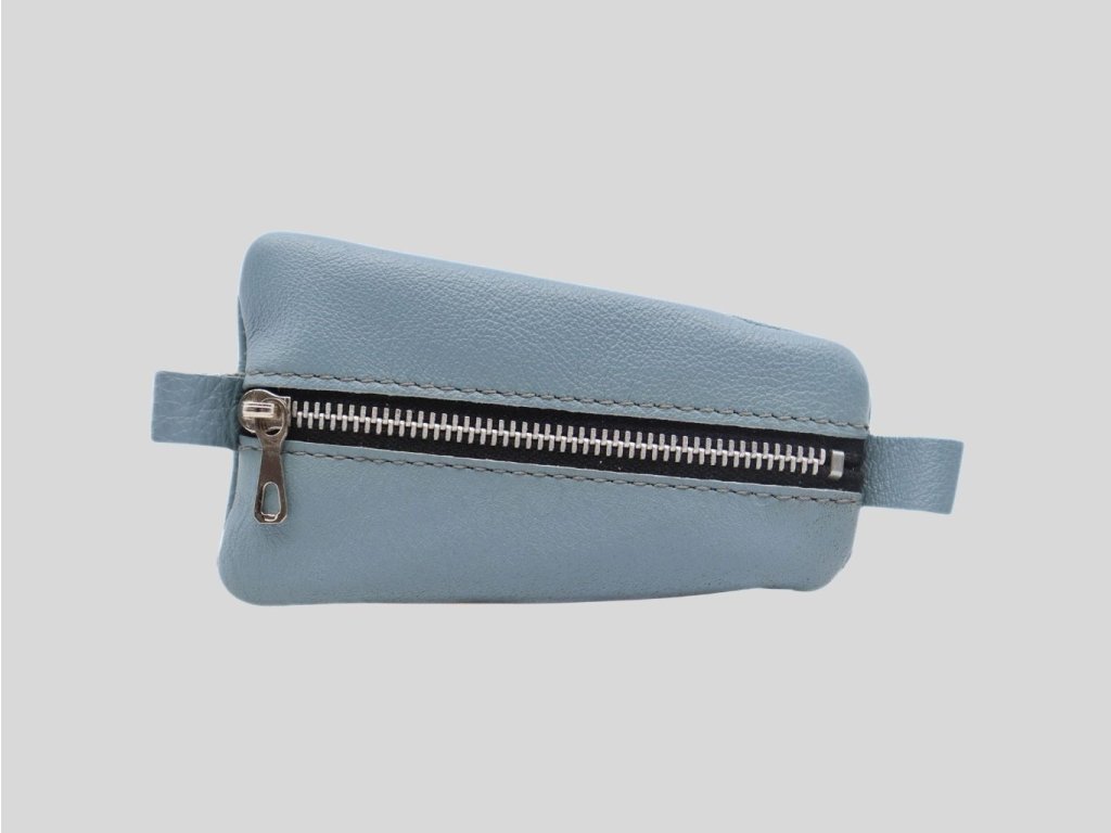 Kožená kľúčenka v jemnej modrej farbe a príjemnej mäkkej koži. Elegantne uschová všetky vaše kľúče, k čomu jej pomáha aj kovové krúžko, ktoré je vo vnútri kľúčenky pripevnené na prišitom koženom pútku. Pokiaľ máte radi svoje kľúče pokope a v bezpečí, tak táto je pre vás ako stvorená. Alebo ňou môžete potešiť aj niekoho vášmu srdcu blízkeho.