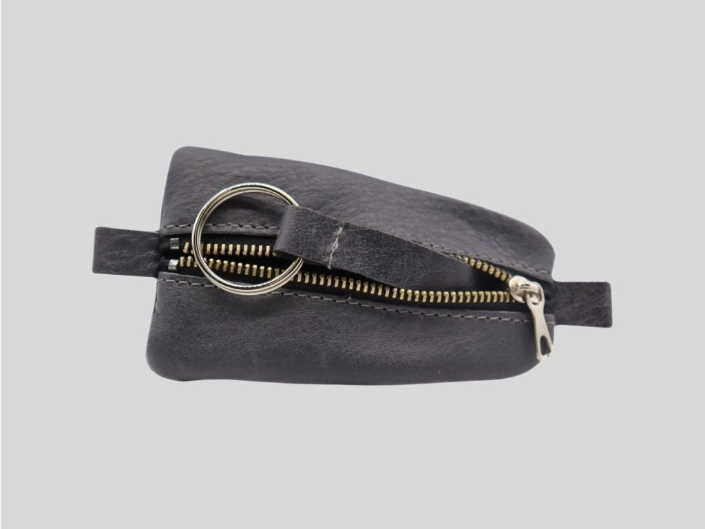 Kožená kľúčenka v tmavšej sivej farbe a príjemnej mäkkej koži. Elegantne uschová všetky vaše kľúče, k čomu jej pomáha aj kovové krúžko, ktoré je vo vnútri kľúčenky pripevnené na prišitom koženom pútku. Pokiaľ máte radi svoje kľúče pokope a v bezpečí, tak táto je pre vás ako stvorená. Možno aj ako kvalitný a vkusný tip na darček.