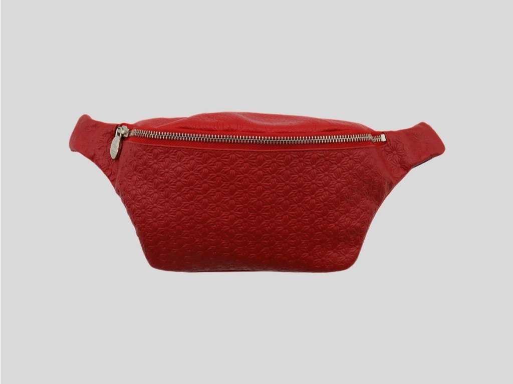 Kožená ľadvinka v krásnej príťažlivej žiarivej červenej farbe, ktorá je farbou lásky, vášne, energie a životnej sily. Na prednom diele vlisované jemné kvietky. Vkusná a praktická zároveň. Zabezpečí vám, že všetko, čo v nej máte uložené, bude stále pod vašou kontrolou. V súčasnosti trendový a elegantný módny doplnok namiesto kabelky. A dámy, už dávno nielen pre pánov.
