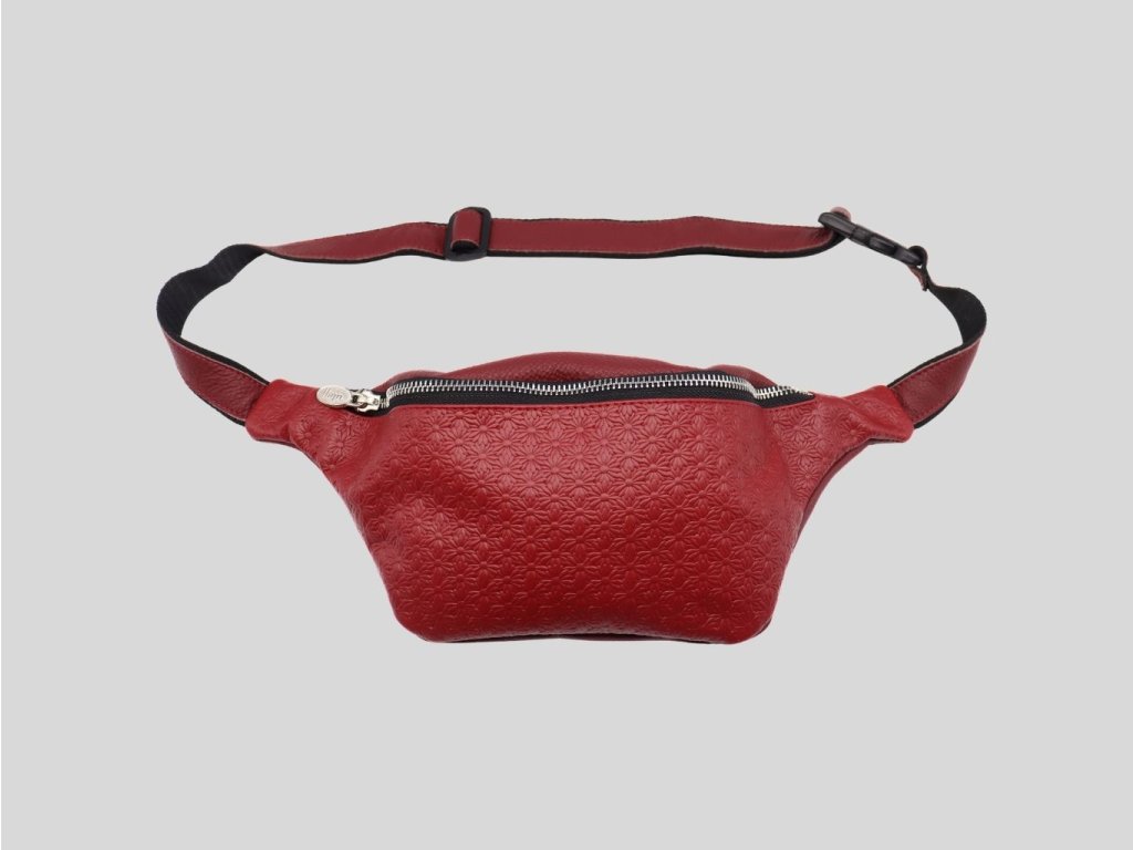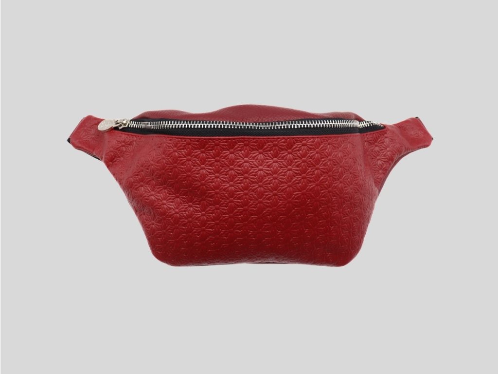 Kožená ľadvinka v krásnej ohnivej bordovej červenej farbe, ktorá je túto sezónu in. Na prednom diele vlisované jemné kvietky. Vkusná a praktická zároveň. Zabezpečí vám, že všetko, čo v nej máte uložené, bude stále pod vašou kontrolou. V súčasnosti trendový a elegantný módny doplnok. A dámy, už dávno nielen pre pánov.
