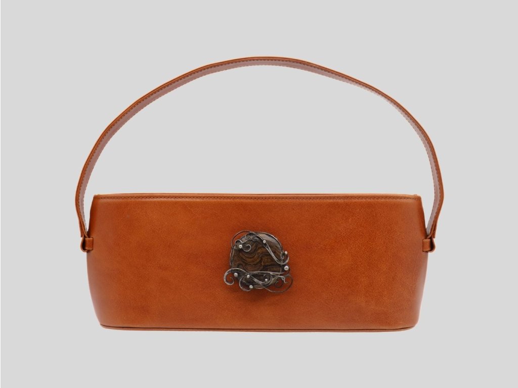Kožená listová kabelka v krásnej zemitej svetlohnedej farbe, ktoré sú tento rok v kurze. Ikonický šperk Bronzit, ktorý prebúdza odvahu, láskavosť a sebaprijatie, ako detail, len podčiarkuje jej výnimočnosť. Môže spoľahlivo doladiť vašu garderóbu k dokonalosti, či už to bude ples, svadba, večierok alebo...Kvalitný doplnok do spoločnosti.