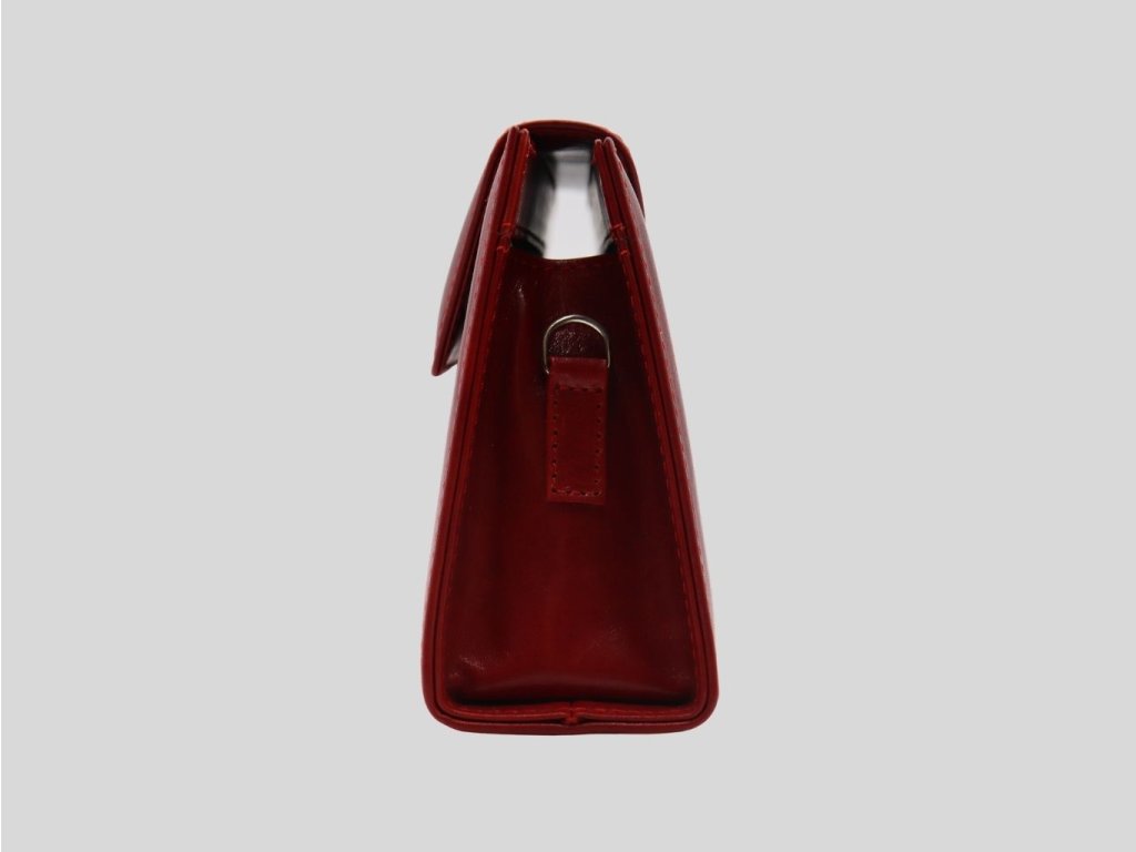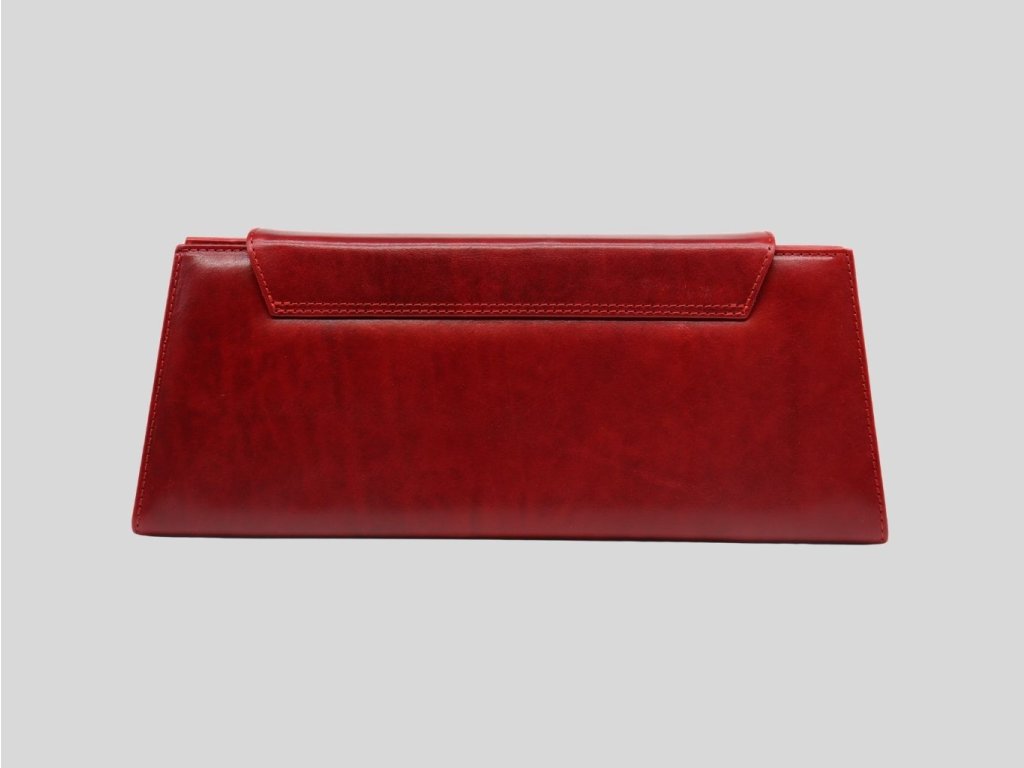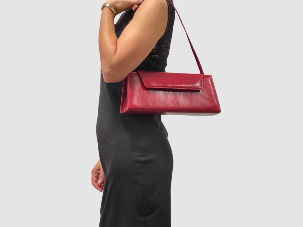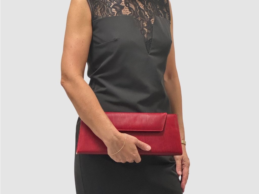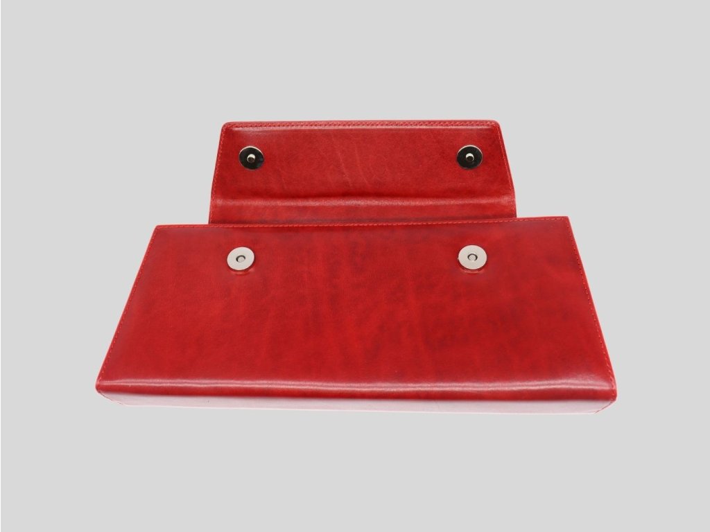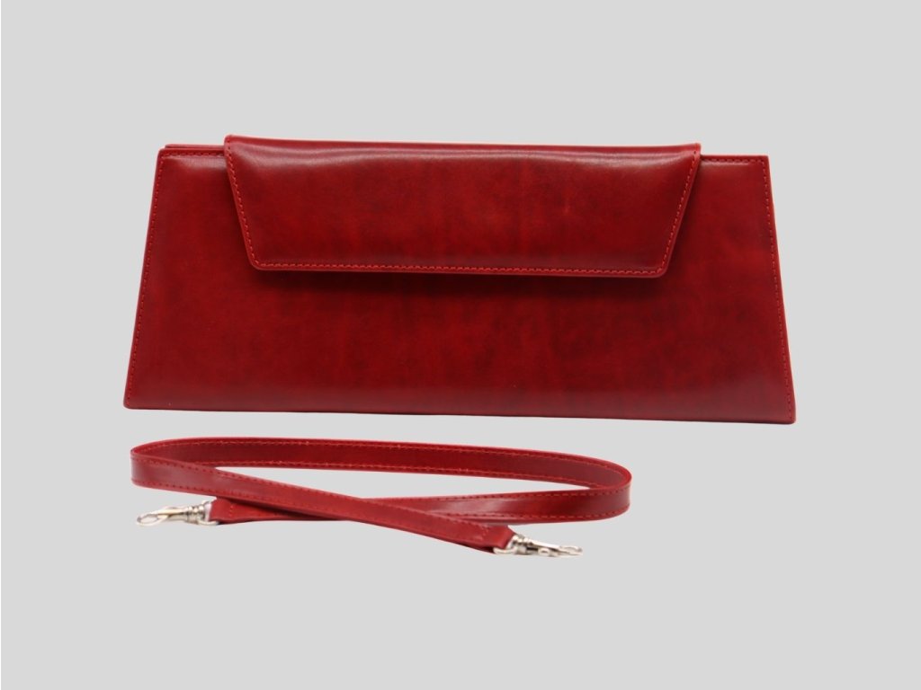 Kožená listová kabelka v príťažlivej žiarivej červenej farbe, ktorá je farbou lásky, vášne, energie a životnej sily, s chlopňou. Upúta pozornosť na prvý pohľad. Samozrejmosťou je pripojiteľné remienko. S tými správnymi doplnkami elegantne vyladí celý váš outfit. Ideálna, ak sa idete zabaviť na ples, večierok, svadbu či na rande...Kvalitný módny doplnok do spoločnosti.