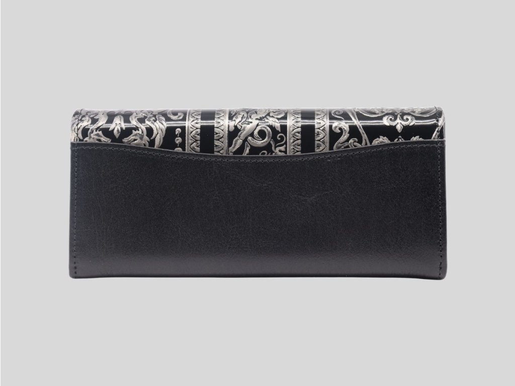 Luxusná kožená peňaženka s nádhernou maľbou predstavujúcou súzvuk, súlad a harmóniu v kombinácii s čiernou farbou na zadnej strane je výnimočná nielen vzhľadom, ale aj svojimi materiálmi. Je ušitá z kvalitnej usne hermés, ktorú používajú špičkoví módny výrobcovia. Lisovaná a ručne maľovaná koža. Peňaženka, ktorá sa vyrába v limitovanej edícii je doplnená zipsami japonskej značky YYK, vyrábanými v Nemecku, ktoré sú známe svojou bezporuchovosťou. Kombinácia s drahým kovaním zaručuje výnimočnosť každému výrobku.