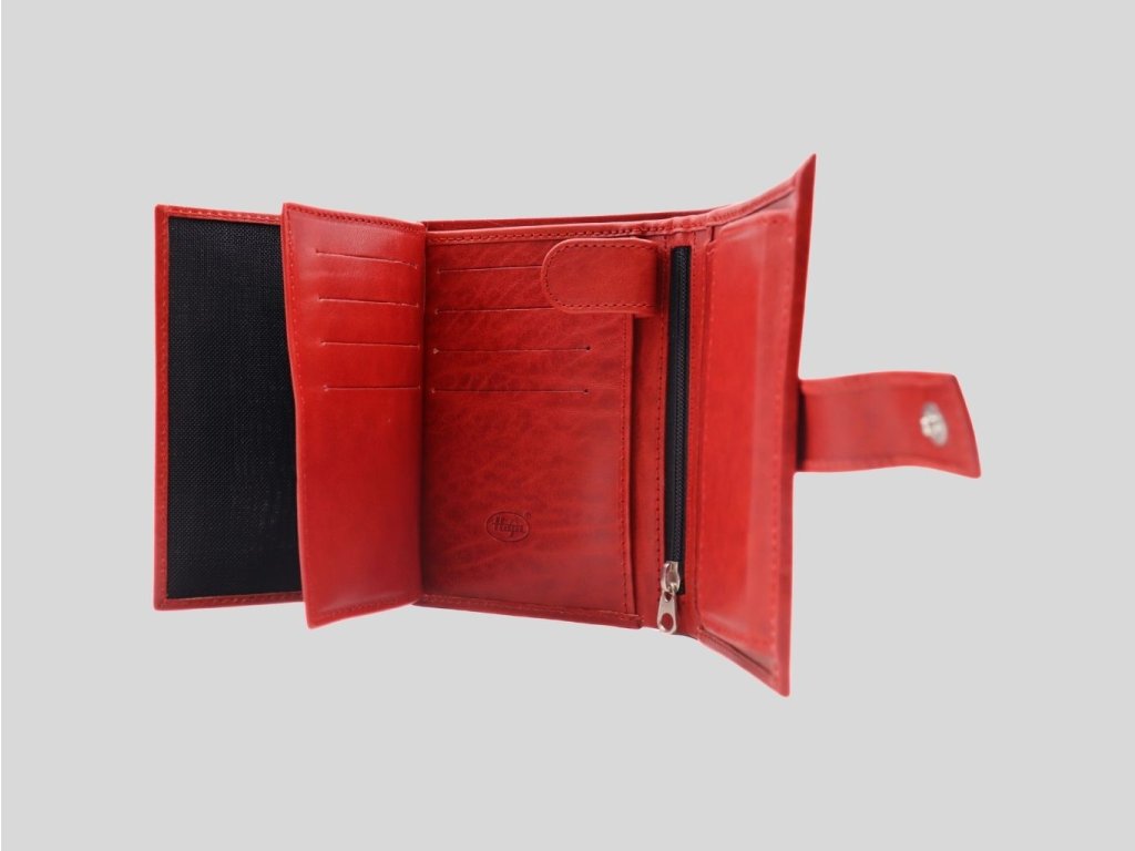 Kožená peňaženka v krásnej príťažlivej žiarivej červenej farbe, ktorá je farbou lásky, vášne, energie a životnej sily. V strednej veľkosti ponúka pomerne dosť priestoru na usporiadanie všetkého, čo potrebujete mať pod kontrolou. Klasický, elegantný a zároveň praktický módny doplnok. Kvalitný výrobok, ktorý vám bude robiť radosť. Alebo aj skvelý tip na darček pre blízkeho.