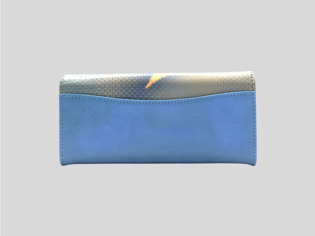 Vnútorná výbava: * 3 x priehradka na papierové bankovky * 1 x zipsové vrecko na kovové mince * 15 x priehradka na vizitky * 1 x puzdro so sieťkou * 1 x vrecko na vnútornej strane chlopne * 1 x vrecko na zadnej strane peňaženky
