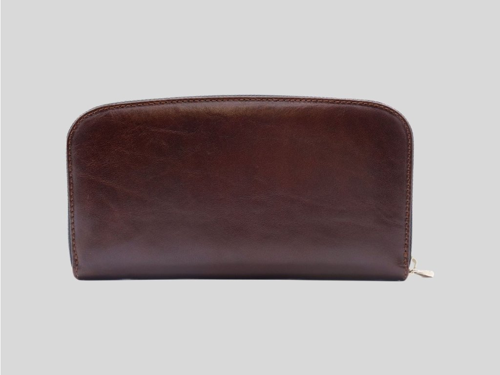 Kožená peňaženka v krásnej tmavej gaštanovej hnedej farbe, ktorá je práve v kurze. Je to farba zeme, ktorá pôsobí prirodzene a dôverne. Hodí sa pre hnedooké dámy, brunetky a ryšavky. Vo forme peračníka určite zaujme. Vďaka svojej veľkosti dokáže spoľahlivo usporiadať všetko, čo potrebujete mať pod kontrolou a v bezpečí. Kvalitný a dizajnový kúsok k vašej kabelke.